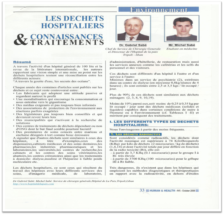 LES DECHETS HOSPITALIERS CONNAISSANCES & TRAITEMENTS