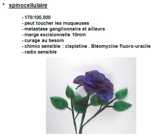 - Spinocellulaire: cisplatine Bléomycine, fluorouracile