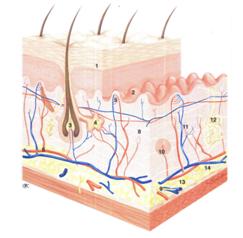 Derme : Épaisseur de 0,3mm à 3 mm (selon la région) 2 couches ou stratum