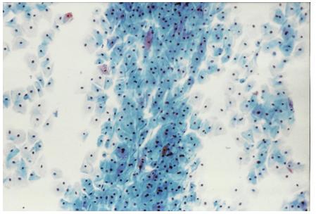 We observe keratinocytes in different stage of their evolution.