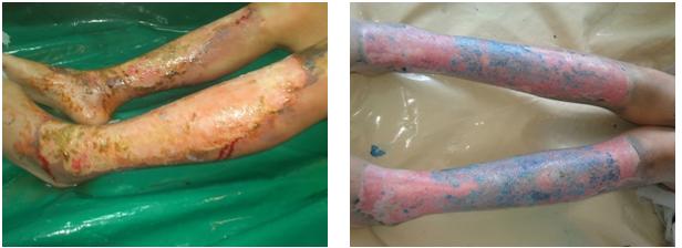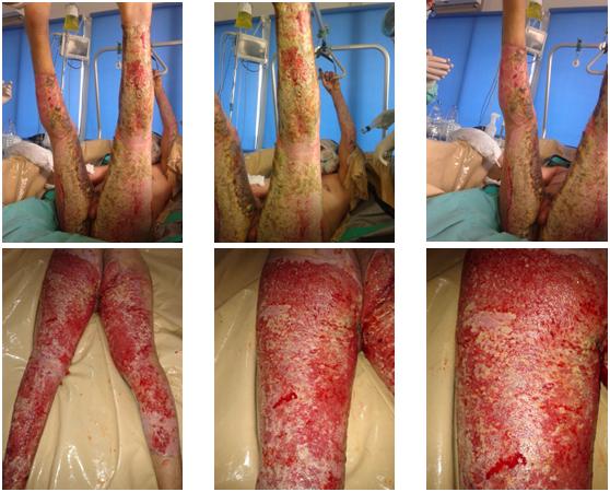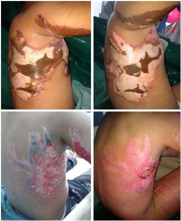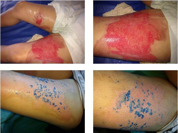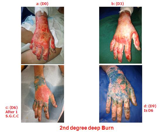 D3 after sequential graft of skin cell process, D7 after burn D6 after 2 sequential grafts of skin cell process, D10 after burn