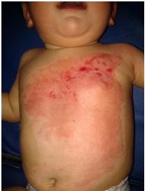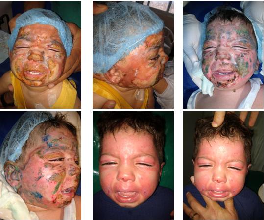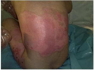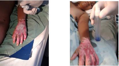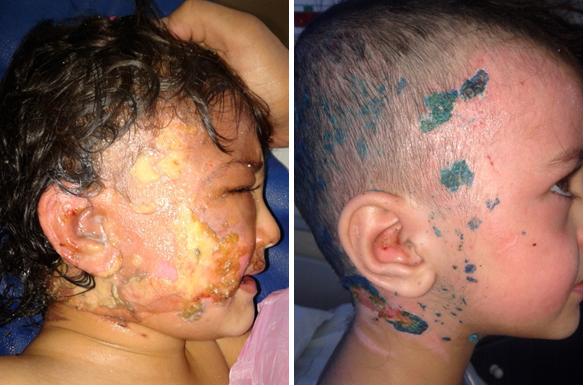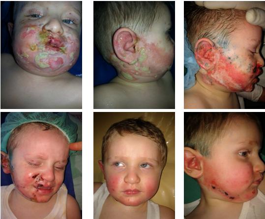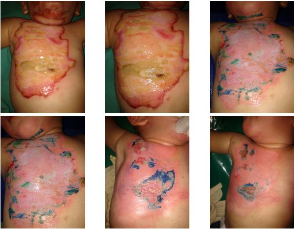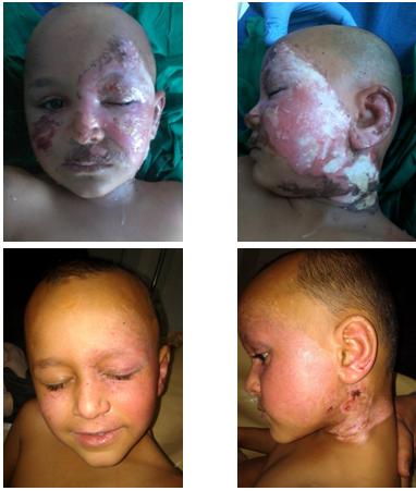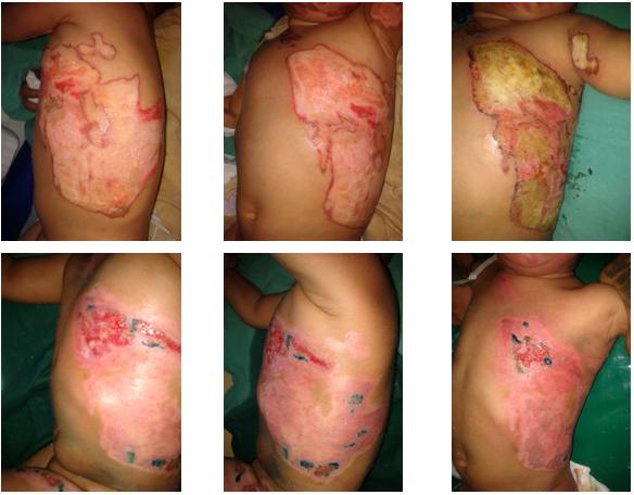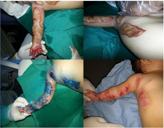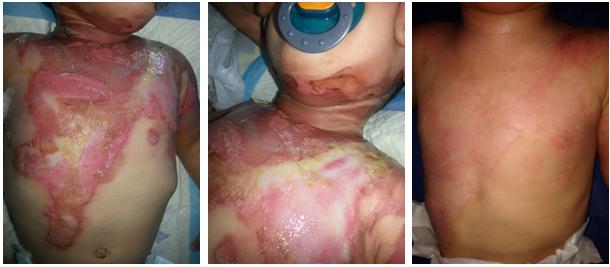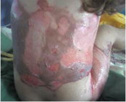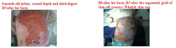 18 month-old infant, arrive D6 after his second depth and third degree burn