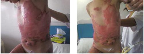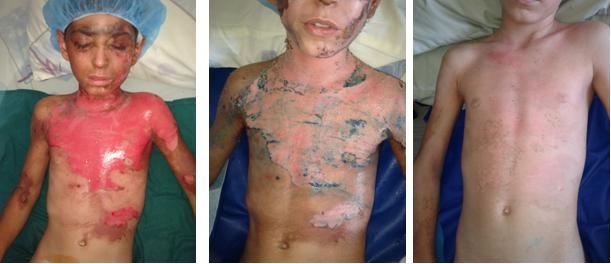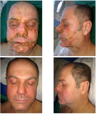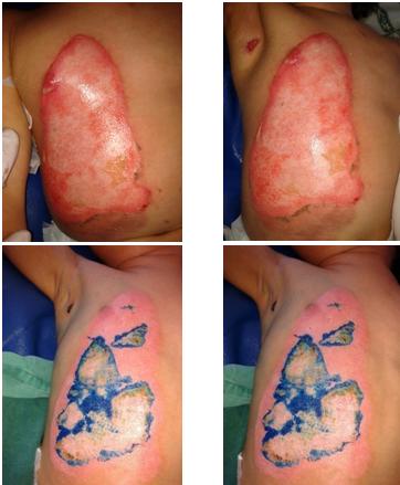 D14 after burn, D9 after 3 sequential grafts of skin cell process