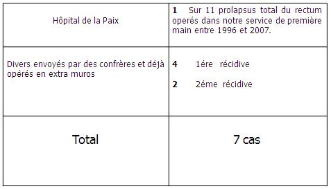 TRAITEMENTS DES RECIDIVES - PROLAPSUS TOTAL DU RECTUM A PROPOS DE 7 CAS