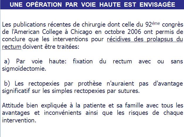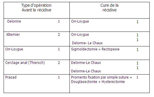 RECIDIVE PROLAPSUS DU RECTUM