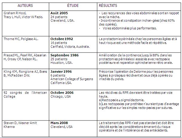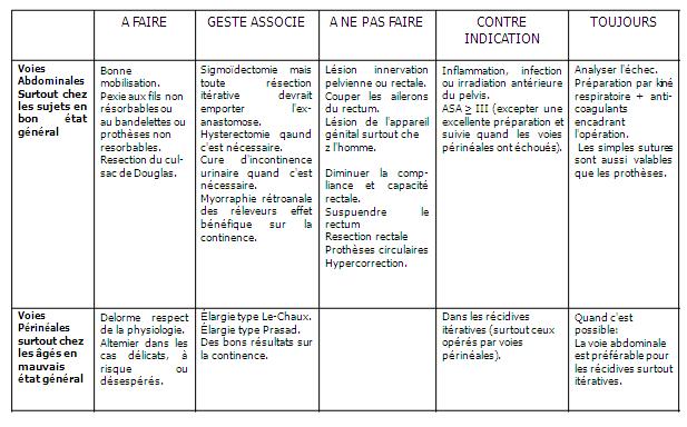 CHOIX THÉRAPEUTIQUE DANS LA CURE DU RECIDIVE PROLAPSUS DU RECTUM
